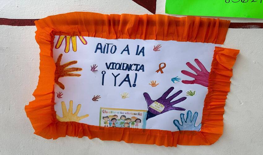 Gracias a las facilidades brindadas por nuestra presidenta Mimí Sosa, el Instituto de la Mujer organizó una conferencia y un taller de elaboración de carteles en la Escuela Primaria Bicentenario, como parte de los 16 Días de Activismo por la Eliminación de la Violencia.
