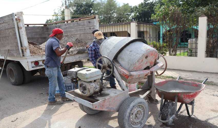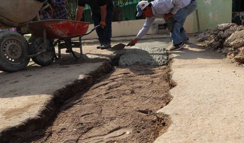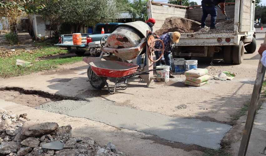 Bajo la gestión de la presidenta Mimí Sosa, se están llevando a cabo trabajos de bacheo en los cinco puntos afectados de la calle Ébano, que da entrada a la Colonia Paraíso.