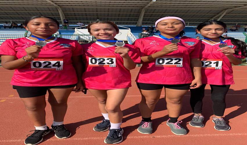 Logrando el segundo lugar en la prueba de Relevos 4 x 100 Femenil.