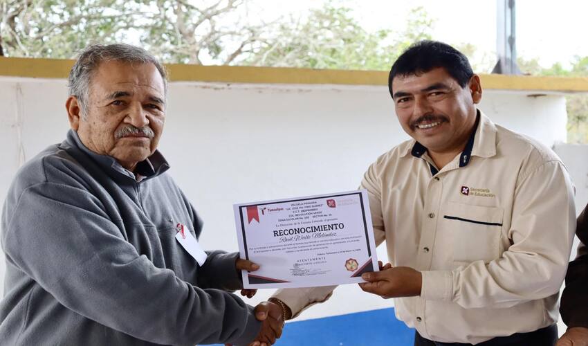 La ceremonia, presidida por el Profesor René López Rangel, supervisor escolar de la Zona No. 158, contó con la participación del Profesor Pedro Hernández Calzada, director del plantel; el Maestro José Antonio Romero Castillo; y la Maestra Silvia Leal Ruiz, fundadora de la escuela en 1982. Durante su gestión, la Maestra Leal gestionó la construcción del primer aula y baños, que hoy funcionan como biblioteca escolar.