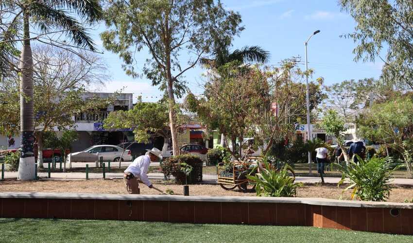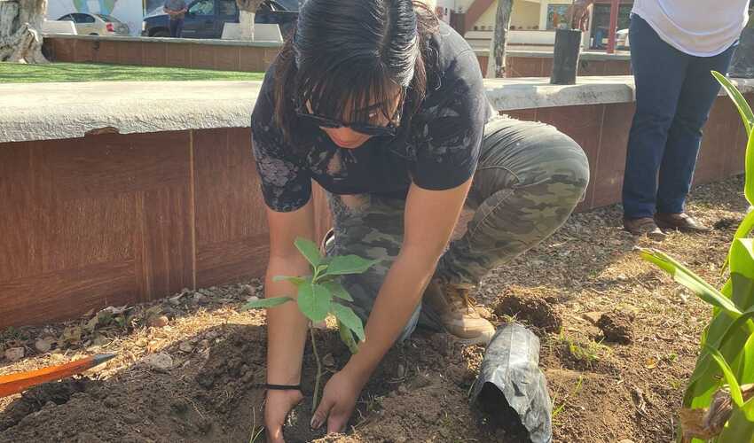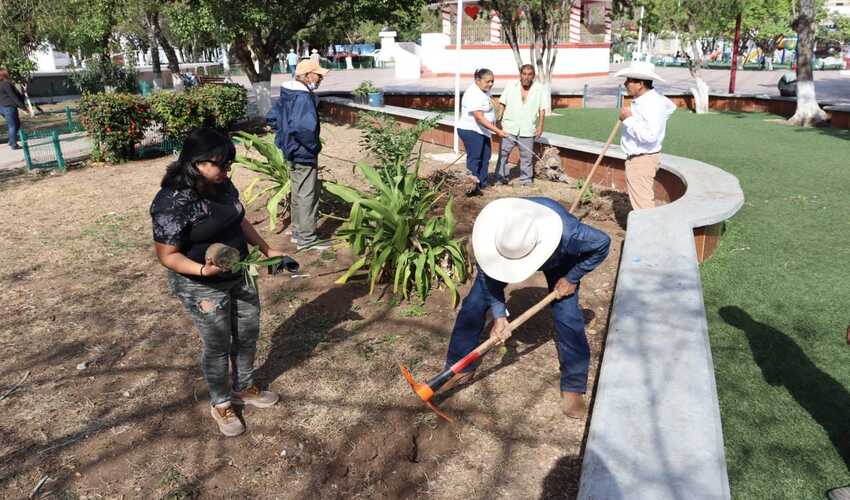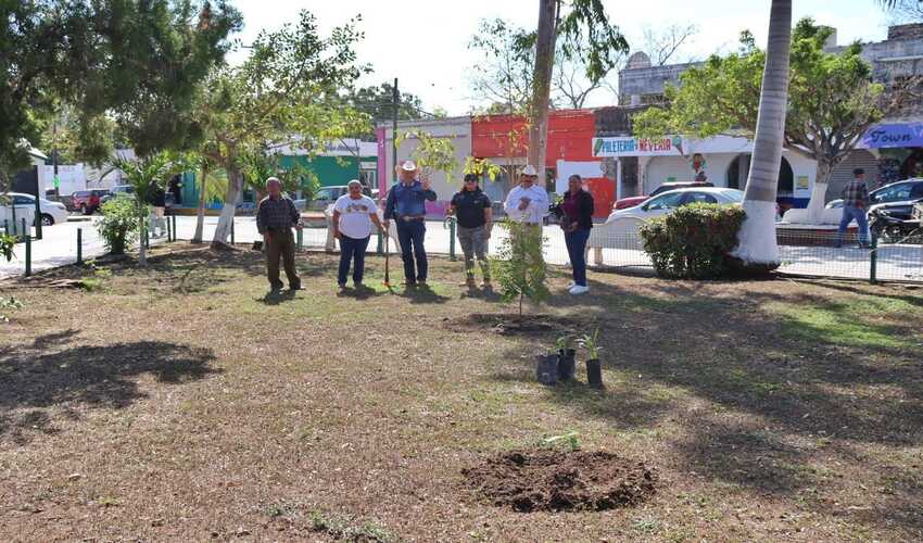 El Gobierno Municipal 2024-2027, que encabeza Mimí Sosa, llevó a cabo a través de la Dirección de Desarrollo Rural la siembra de 30 árboles en la plaza municipal, entre ellos Palo de Rosa, Níspero, Palma y Pata de Vaca.