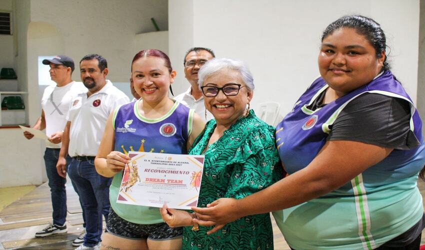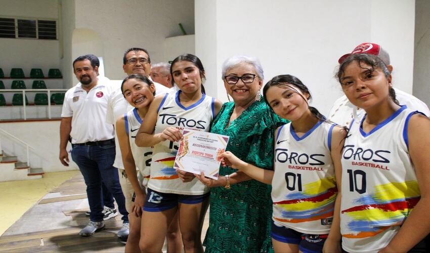 Agradecemos la presencia y respaldo de la presidenta municipal Mimi Mimí Sosa, acompañada por el Prof. Guillermo Amaya Tijerina, primer regidor; el Prof. Pablo Rubio Quiñones, director de deportes; el presidente de la liga Moisés Machuca, y Alde Martínez, auxiliar en basquetbol.