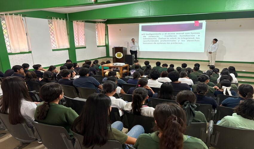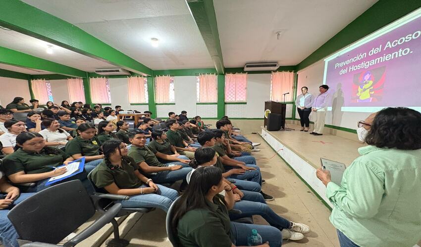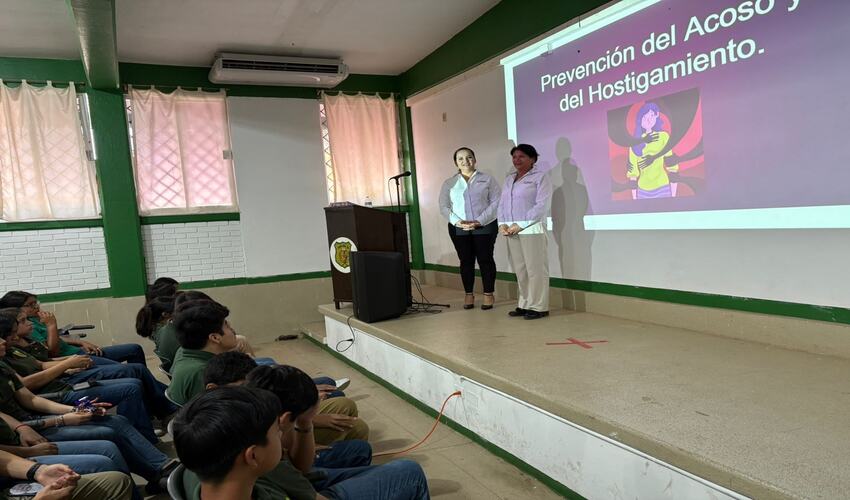 A través del Instituto de la Mujer de Aldama, se llevó a cabo la conferencia “Prevención del Hostigamiento y del Acoso” en las instalaciones del CBTA No. 56, con la participación de 79 alumnas y alumnos.