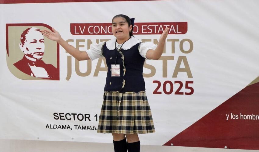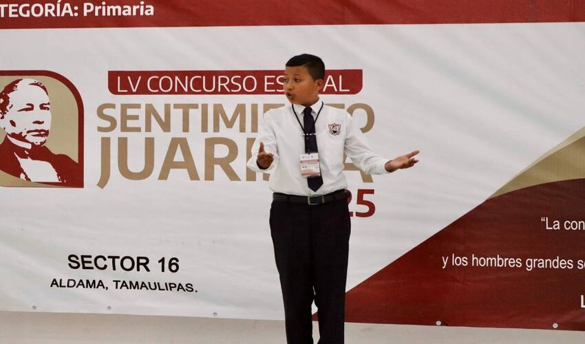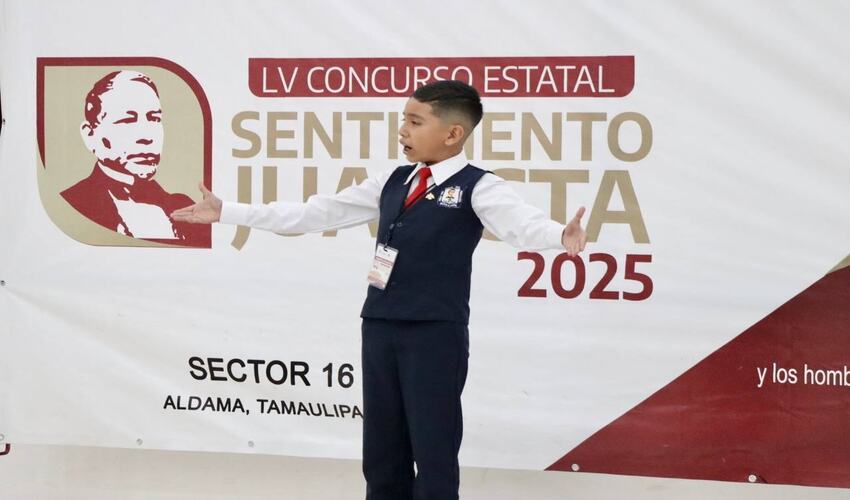 El Gobierno Municipal de Aldama, que encabeza con gran compromiso la Profesora Mimí Sosa, tuvo el honor de ser sede del LV Concurso Estatal Sentimiento Juarista, correspondiente al Sector 16. Este importante evento reunió a 12 niñas y niños talentosos provenientes de los municipios de Aldama, Tampico, González, Altamira, Mante, Madero, Xicoténcatl, Ocampo y Gómez Farías.