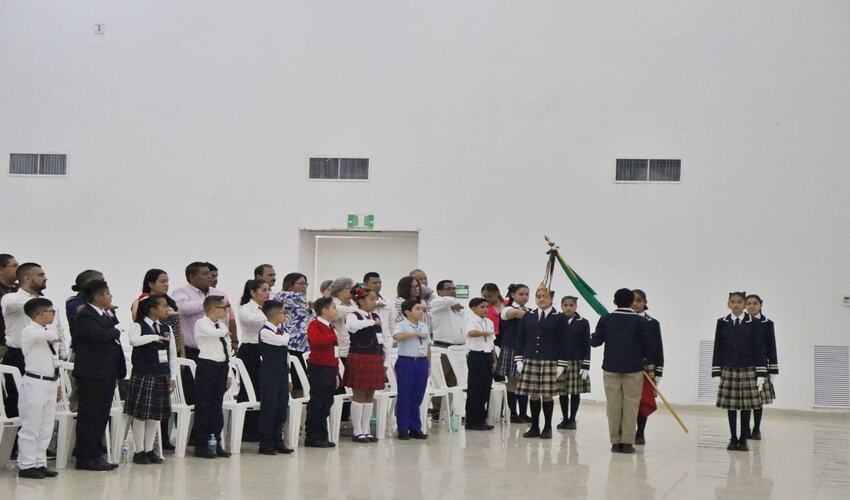 La Presidenta Municipal, Profa. Mimí Sosa, acompañada por integrantes del H. Cabildo, asistió al evento para refrendar su apoyo a la educación, destacando la importancia de fomentar los valores cívicos y el amor a México desde la infancia. Su presencia fue un gesto de reconocimiento al esfuerzo de estudiantes, docentes y autoridades educativas.