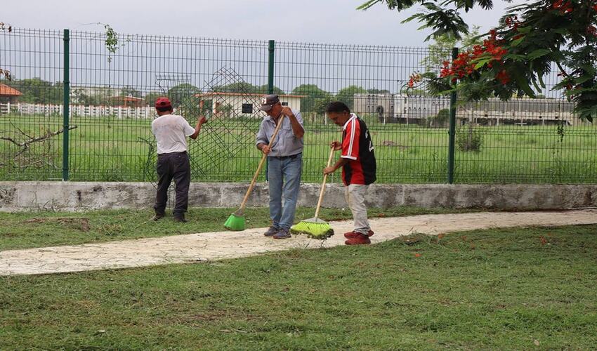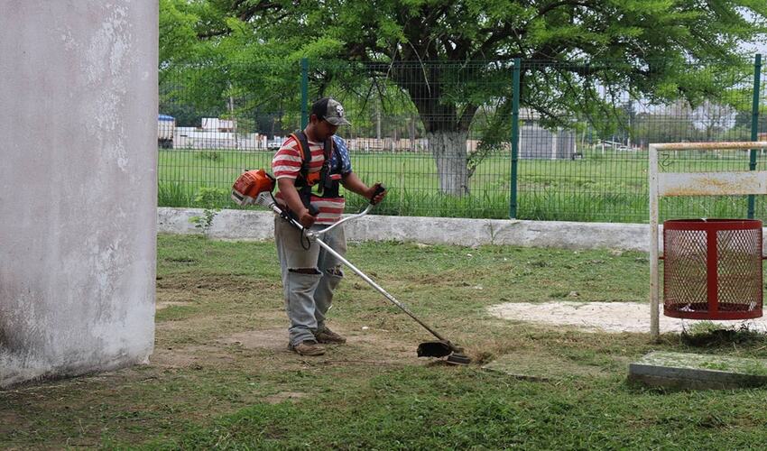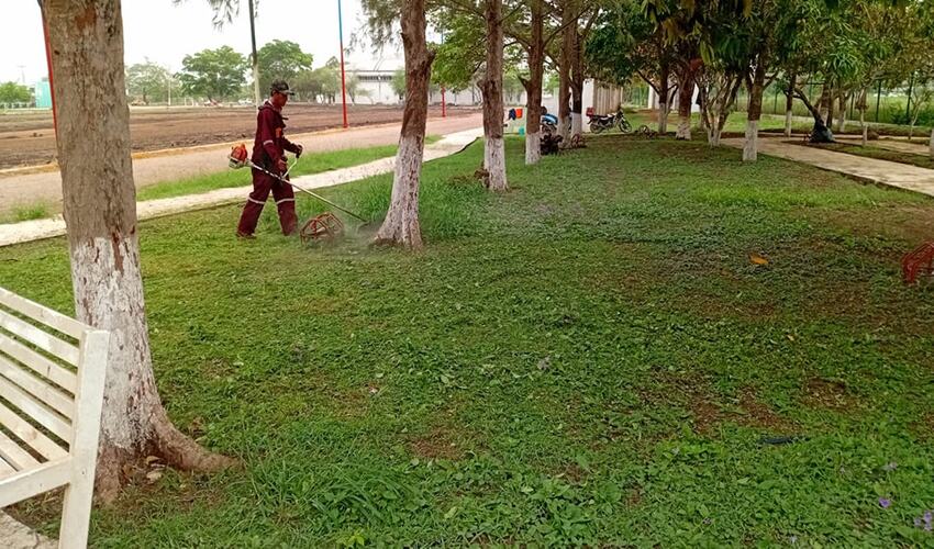 El Gobierno Municipal que encabeza la presidenta Mimí Sosa, a través de la Dirección de Servicios Públicos, lleva a cabo este día labores de limpieza y chapoleo en las áreas verdes del gimnasio municipal.
