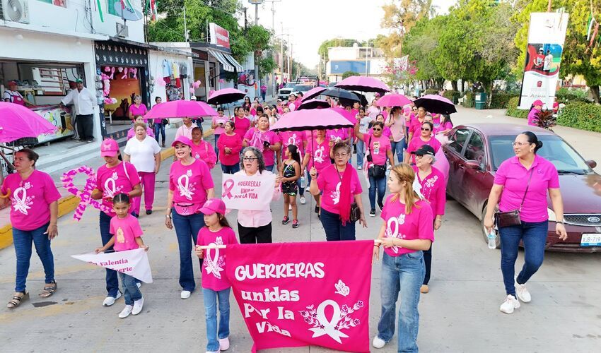 Aldama, Tamps. — En un ambiente lleno de esperanza y fortaleza, las calles de Aldama se tiñeron de color rosa durante la caminata conmemorativa del Día Internacional de la Lucha contra el Cáncer de Mama, recordando que la detección oportuna salva vidas.