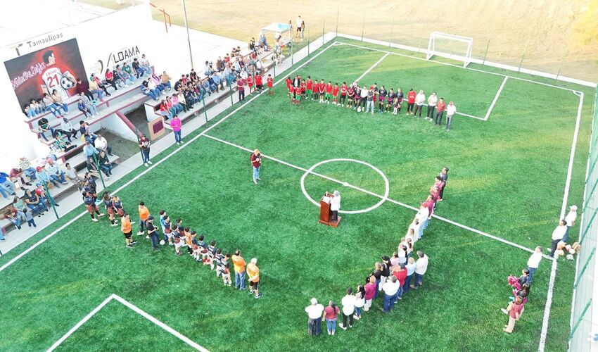 Aldama, Tamaulipas.— El Gobierno Municipal de Aldama inauguró la rehabilitación del Campo de Fútbol 5 “Nain De Leija González”, ubicado en la Unidad Deportiva Municipal, luego de permanecer en abandono por más de siete años, marcando un momento histórico para el impulso al deporte y la convivencia social en el municipio.